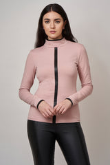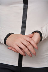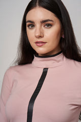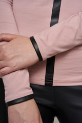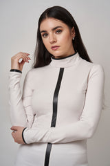 Col roulé en coton avec empiècement linéaire sur le devant pour un look contemporain. Détails de cuir vegan au col et au manches pour un effet contrastant et décontracté. Fermoir invisible sur l'épaule. Tissu très confortable et coupe passe-partout.