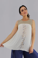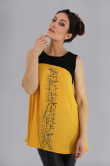 Haut vaporeux sans manches. Ce haut est peint à la main par la talentueuse Artiste Manika Gaudet suite a une magnifique collaboration sur ce projet avec ManikFashion. Découvrez plusieurs autres pièces peintes à la main de la collection.