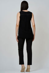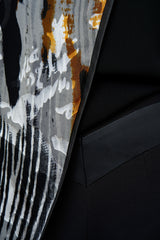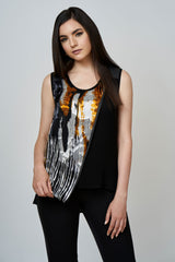 Blouse ample avec panneau asymétrique en soie. Panneau dans un imprimé coloré et artistique. Empiècements et passepoils en rayonne cirée sur le devant et dos. Coupe attrayante pour silhouette. Tissus léger en Viscose. Longueur de l'ourlet asymétrique et fentes latérales permettant de porter la blouse de différentes façons.