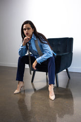 Grâce à la rigidité du tissu, les poignets peuvent être portés de plusieurs façons—pliés, retroussés ou laissés longs—tout en conservant leur forme avec élégance. Pleine de charme et de personnalité, cette chemise passe aisément d’un look chic de bureau à une tenue décontractée, en faisant une pièce incontournable pour une garde-robe stylée.