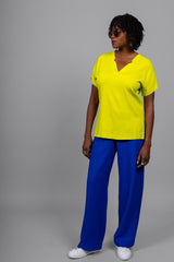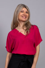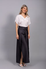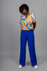 La blouse KARINA est portée ici avec le pantalon DANIKA , le palazzo court TAMARA et le palazzo long MELINA