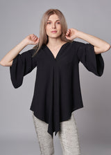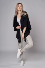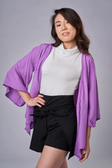 Blouse et veste à la fois! Coupe permettant de porter cette veste en blouse grâce aux petits boutons pression sur les panneaux devant. Tissu SUPER doux et léger et avec certification  OEKO-TEX®. L'ampleur séduisante et la versatilité de cette pièce l'a rendent irrésistible !
