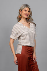 Cette blouse s'agence autant avec un jeans qu'un pantalons chic pour toutes vos activités estivales.