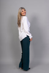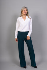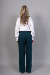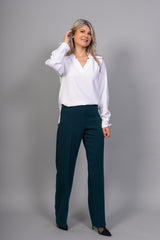 Fabriqué à partir de tissus de qualité, ce pantalon offre à la fois confort et style. Sa coupe cintrée moderne s'associe à un tissu extensible pour vous offrir une liberté de mouvement tout au long de la journée. La taille haute ajoute également une touche d'élégance intemporelle à votre tenue. De plus, il est munit d'une bande élastique à la taille qui permet un meilleur ajustement dependent de la morphologie de chacun.