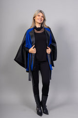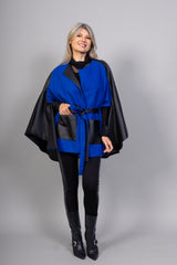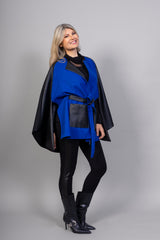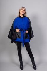 Vous allez adorer par la Cape Nina! La linéarité de la cape lui confère une élégance intemporelle. Ses lignes épurées et sa coupe classique en font une pièce polyvalente qui peut être portée avec élégance pour différentes occasions, que ce soit par-dessus une robe élégante lors d'une soirée spéciale ou par-dessus un pull décontracté pour un look plus décontracté. Sa teinte bleu éclaté ajoute une touche de fraîcheur et de vitalité à votre garde-robe, une couleur vibrante qui ne manquera pas de captiver l'attention. Tandis que les poches appliquées en cuir vegan donneront une touche de glamour à votre look !