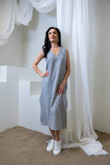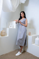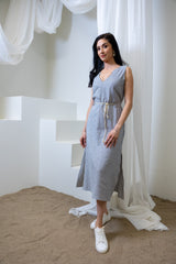 La robe Tessa est le coup de coeur de l'été ! Conçue pour les journées chaudes où confort et style doivent aller de pair. Le mélange léger de lin-coton laisse respirer la peau tout en offrant une belle texture naturelle. Son encolure soulignée par un détail de corde, assorti à la ceinture, apporte une touche artisanale et décontractée.