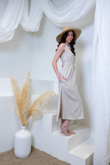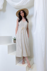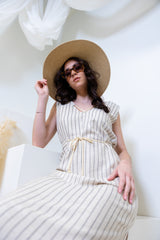La robe Tessa est le coup de coeur de l'été ! Conçue pour les journées chaudes où confort et style doivent aller de pair. Le mélange léger de lin-viscose laisse respirer la peau tout en offrant une belle texture naturelle. Son encolure soulignée par un détail de corde, assorti à la ceinture, apporte une touche artisanale et décontractée.