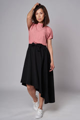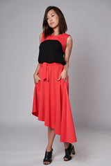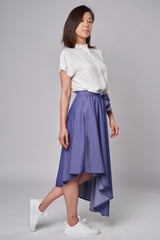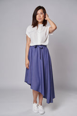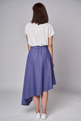 Jolie jupe asymétrique. Coupe stylée et fluide avantageant tout type de silhouette. Tissu ULTRA confortable et avec certification OEKO-TEX®. La jupe parfaite pour des promenades au parc où des sorties apéro. Bande élastique de 2" à la taille. Poches latérales.